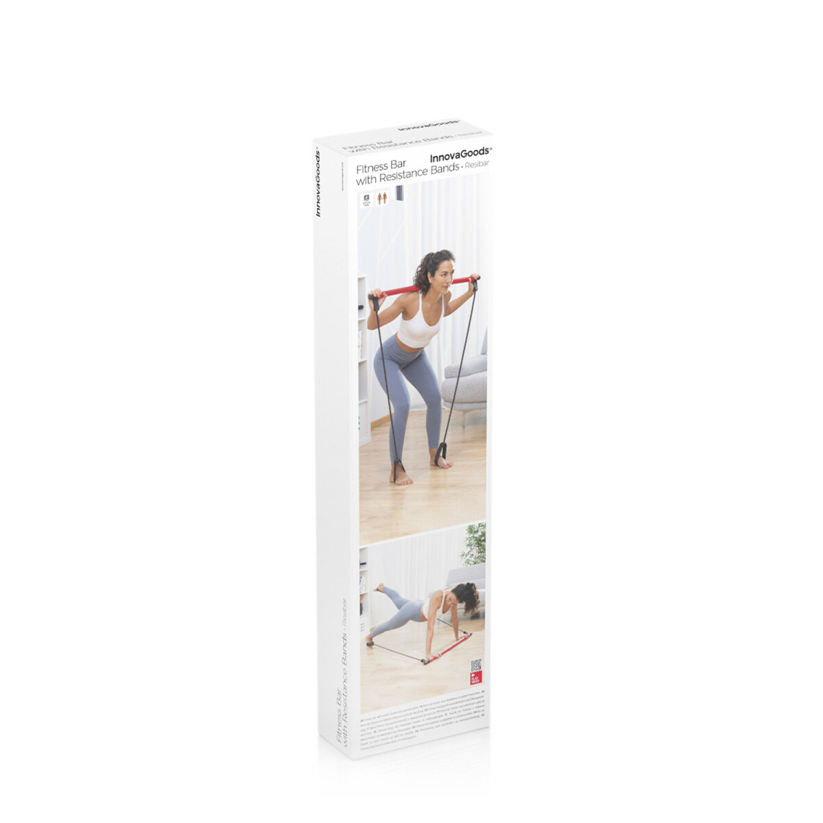 A fitness bar with elastic resistance bands and exercise guide which enables you to do a full workout with a wide variety of exercises and stretches to work the 4 main muscle groups (torso, arms, legs, back). Because of its versatility, it can be used in many positions (standing, lying down…) and for different sports disciplines including fitness, yoga, pilates, etc. Ideal for strengthening and toning the body muscles (abdominals, arms, legs, glutes, chest, waist, shoulders, back, etc.). Its lightweight, detachable and portable design makes it easy to transport and store, taking up little space, which is a huge advantage for getting fit without the need to accumulate bulky gym equipment. This modern, multifunctional training bar with tensors is ergonomic, unisex and suitable for all levels (from beginners to professionals). In addition, it is very robust thanks to the inner metal tube and provides a firm grip with its non-slip coating. Includes 2 elastic bands, 2 gripping handles for hands or feet and a high level of resistance (up to 31.75 kg / 70 lb). Perfect for exercising at home, although it can also be used outdoors.