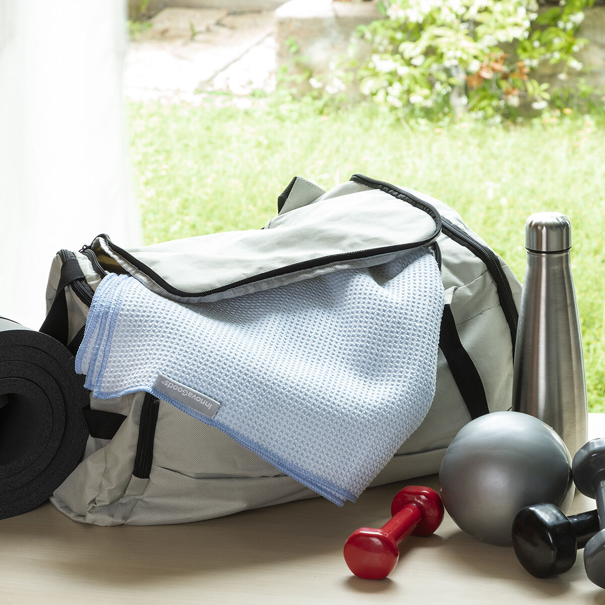 A quick-drying fitness towel with an innovative non-slip design on both sides that will help you to do physical exercises more comfortably. The special weave texture provides a non-slip effect, giving grip and stability and preventing slipping. Its features make this multi-use towel is very versatile and adaptable. It can be used at home or for fitness in the gym, yoga, sports, gymnastics, etc. Its use promotes personal hygiene, particularly in public spaces. Ideal for placing over gym machines or gym mats. It is also soft and pleasant to the touch, so won’t damage or graze the skin. This light and manageable towel can be folded or rolled up with ease and occupies the minimum amount of space when transporting or storing it. The towel is also very absorbent and quickly absorbs perspiration. It is also hand-washable.