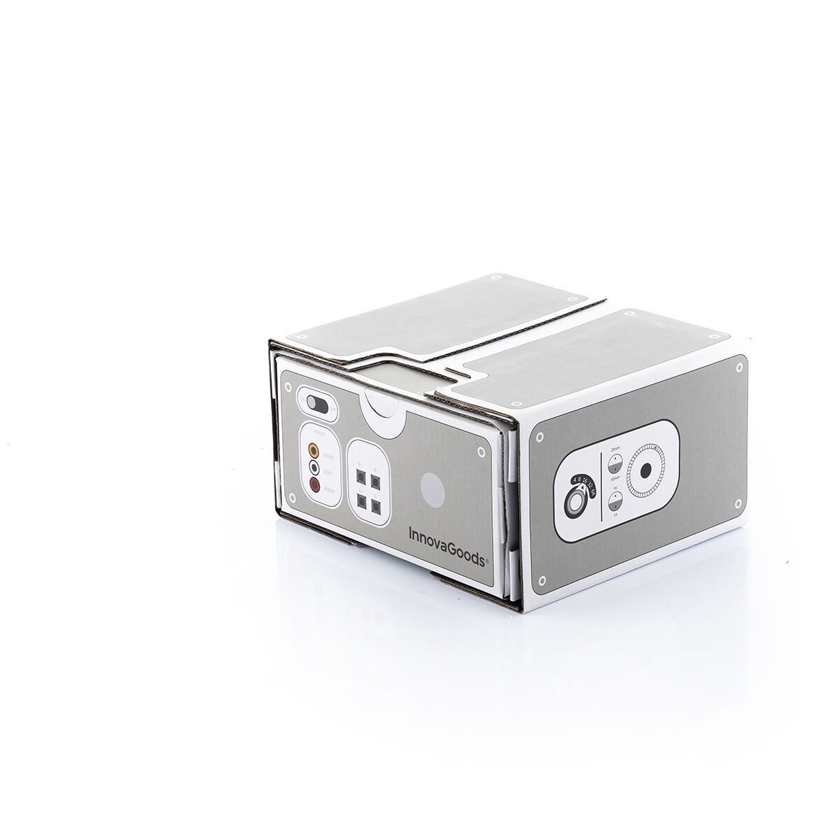A vintage smartphone projector with a highly original design which is ideal for children and adults to enjoy some entertaining time. A different way of creating a special ambience to enjoy a film session at home alone or in company. This tabletop projector is made from cardboard and features a lens with x8 magnification. It is very simple to use, without cables or electricity. It is also lightweight and portable so it can be taken anywhere easily. You just need to insert the smartphone into the interior compartment and connect it to the suction cups. We recommend putting the volume and brightness on the smartphone onto the highest level. To optimise the projection, the room or screening space must be completely dark, and the lens should be pointed at a white wall or ceiling. To increase or reduce the projection size, you simply move the projector nearer or further away from the projection surface (wall or ceiling). The body of the projector is extendable and the distance between the mobile screen and the projector lens can be adjusted manually, obtaining a better focus and picture quality. Bear in mind that the picture obtained will be the result of the projection and expansion of the picture on the smartphone screen without the quality of a conventional projector.